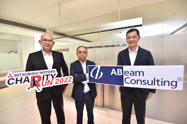 นายธีระพันธุ์ ละอองศรี (คนขวา) ผู้อำนวยการกลุ่มธุรกิจอุตสาหกรรมการผลิต และธุรกิจอุตสาหกรรมยานยนต์ บริษัท เอบีม คอนซัลติ้ง (ประเทศไทย) จำกัด เป็นตัวแทน ประกาศความร่วมมือเป็นหนึ่งในผู้สนับสนุนกิจกรรม “MITSUBISHI MOTORS CHARITY RUN 2022” ในการส่งเสริมสุขภาพที่ดีของคนไทย พร้อมได้ร่วมทำบุญ โดยมี นายเอกอธิ รัตนอารี (คนกลาง) กรรมการรองผู้จัดการใหญ่ สายงานทรัพยากรบุคคลและบริหารทั่วไป พร้อมด้วย นายสาโรจน์ มะอาจเลิศ (คนซ้าย) ผู้ช่วยกรรมการผู้จัดการใหญ่อาวุโส สายงานขาย บริษัท มิตซูบิชิ มอเตอร์ส (ประเทศไทย) จำกัด ร่วมเป็นสักขีพยานและเชิญชวนร่วมกิจกรรมที่จะจัดขึ้นในวันอาทิตย์ที่ 11 กันยายน 2565 มหาวิทยาลัยเทคโนโลยีราชมงคลตะวันออก วิทยาเขตบางพระ และวิ่งผ่านเส้นทางธรรมชาติอ่างเก็บน้ำบางพระ