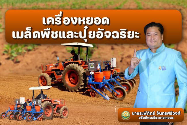 กรมวิชาการเกษตร เปิดตัวสุดยอดเครื่องหยอดเมล็ดพืชและหยอดปุ๋ยแบบอัตโนมัติพ่วงท้ายรถแทรกเตอร์ ปรับเปลี่ยนอัตราการหยอดเมล็ดพันธุ์และปุ๋ยได้แม่นยำตรงตามคำแนะนำเทคโนโลยีการปลูกพืช ข้าวโพด ถั่วเหลือง และถั่วเขียว ช่วยเกษตรกรลดต้นทุนการผลิต นำร่องไปสู่เกษตรอัจฉริยะ สอดรับนโยบายดันไทยเป็น Seed Hub