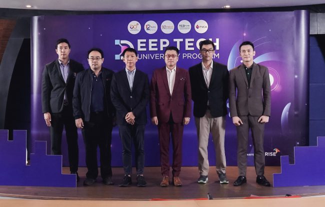 ดร.พันธุ์อาจ ชัยรัตน์ (คนที่ 4 จากซ้าย) ผู้อำนวยการสำนักงานนวัตกรรมแห่งชาติ (องค์การมหาชน) หรือ NIA ร่วมกับหน่วยบริหารและจัดการทุนด้านการเพิ่มความสามารถในการแข่งขันของประเทศ กองทุนพัฒนาผู้ประกอบการเทคโนโลยีและนวัตกรรม สมาคมไทยผู้ประกอบธุรกิจเงินร่วมลงทุน มหาวิทยาลัยเครือข่าย และ RISE สถาบันเร่งสปีดนวัตรกรรมองค์กร เปิดหลักสูตรอบรมเชิงปฏิบัติการเพื่อพัฒนาความสามารถทางธุรกิจ สำหรับกลุ่มสตาร์ทอัพ นักวิจัย และผู้สร้างนวัตกรรม เพื่อพัฒนาศักยภาพนวัตกรให้มีแนวคิดเชิงธุรกิจเชิงลึก (Deep Tech) ผ่าน “โครงการเร่งสร้างธุรกิจสำหรับวิสาหกิจเริ่มต้นที่ใช้เทคโนโลยีเชิงลึกจากมหาวิทยาลัยเพื่อการต่อยอดสู่แหล่งทุนและกลไกสนับสนุนการเงินที่เกี่ยวข้อง :Deep Tech University” เพื่อสร้างเครือข่ายระหว่างสตาร์ทอัพ นักวิจัย และภาคการลงทุน ร่วมกันขับเคลื่อนและสร้างความแข็งแกร่งให้กับนวัตกรรมเทคโนโลยีขั้นสูงในระดับประเทศได้อย่างยั่งยืน โดยกิจกรรมดังกล่าวจัดขึ้นเมื่อเร็ว ๆ นี้ ณ สำนักงานนวัตกรรมแห่งชาติ ถนนโยธี
