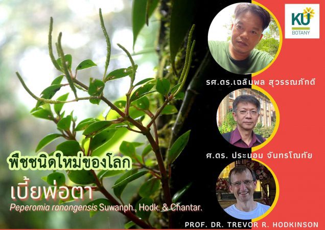 “เบี้ยพ่อตา” (Peperomia ranongensis Suwanph., Hodk. & Chantar.) พืชชนิดใหม่ของโลกที่พบจากบริเวณป่าในจังหวัดระนอง ตีพิมพ์ในวารสาร Thai Forest Bulletin (Botany) เล่มที่ 50 ฉบับที่ 2 ปี 2022 ซึ่งเป็นส่วนหนึ่งของโครงการวิจัยการศึกษาโมเลกุลาซิสเทมาติกส์ของพืชวงศ์พริกไทยในเอเชียตะวันออกเฉียงใต้และความหลากหลายใน สปป. ลาว