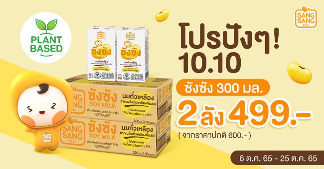 “ซังซัง” นมถั่วเหลืองคั้นสด ผลิตจากเมล็ดถั่วเหลืองจากประเทศแคนาดา รสชาติอร่อย หอมมัน และมีน้ำตาลน้อยกว่า 2% จัดโปรปัง ๆ ให้กับลูกค้าที่ซื้อนมถั่วเหลืองซังซัง ขนาด 300 มล. จำนวน 2 ลัง คุ้มสุด ๆ ในราคาพิเศษ เพียง 499 บาท (จากราคาปกติ 600 บาท) รีบกดช้อปเลยที่ https://bit.ly/3fN2h1X อิ่มอร่อย ได้โปรตีนเต็ม ๆ จากถั่วเหลืองเต็มเมล็ด ในราคาพิเศษตั้งแต่วันนี้ถึง 25 ต.ค.65