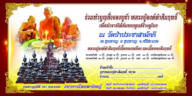 พระครูธรรมธรสมพล ปณญาพโล ขอเชิญชวนทำบุญสั่งจองบูชาหลวงปู่องค์ดำสัมฤทธิ์ สมทบทุนสร้างอุโสถ วัดป่าประชาสามัคคี