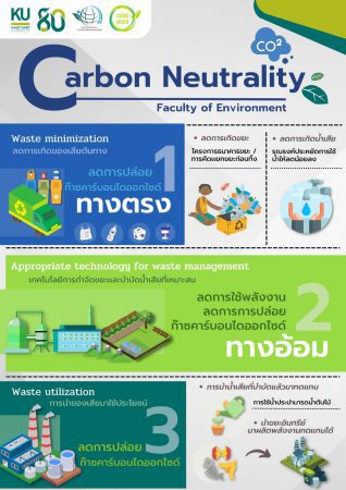 ทั้งนี้ กระบวนการก้าวสู่ความเป็นกลางทางคาร์บอน (Carbon Neutrality) ของมหาวิทยาลัยเกษตรศาสตร์ มี 4 ขั้นตอน ได้แก่