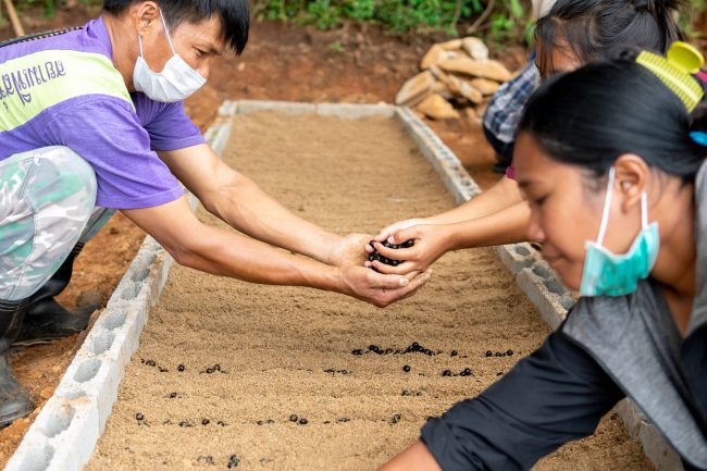 (2) เพิ่มปริมาณของผลผลิตใบชาในอนาคต ผ่านโครงการธนาคารต้นกล้า ที่มอบต้นกล้าชาและเมล็ดพันธุ์ให้กับชุมชนซึ่งเป็นสมาชิกในโครงการ พร้อมให้ความรู้จากผู้เชี่ยวชาญในการพัฒนาศักยภาพเกี่ยวกับกระบวนการเพาะปลูก ตั้งแต่การเพาะเมล็ดและคัดเลือกต้นกล้าที่แข็งแรง จัดอบรมเรื่องการดูแลต้นกล้า การใช้ปุ๋ยที่เป็นมิตรกับสิ่งแวดล้อม และการเก็บเกี่ยวตามมาตรฐาน และในปีนี้ สมาชิกในชุมชนมีแนวคิดร่วมกันในการผลักดันให้ชาดอยปู่หมื่นก้าวสู่มาตรฐาน Organic Thailand เพื่อส่งผลให้ผลิตภัณฑ์ของพื้นที่มีราคาสูงขึ้นพร้อมทั้งเพิ่มรายได้ในระยะยาว