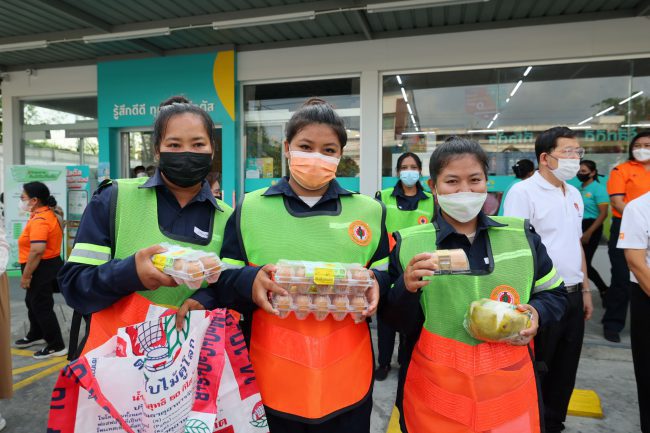 บริจาคอาหารที่จำหน่ายไม่หมดจากร้านโลตัส โก เฟรช ให้พนักงานกวาดถนน