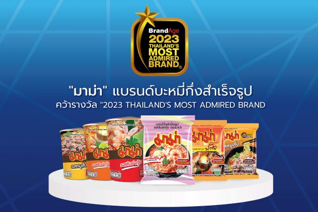 “มาม่า” ตอกย้ำแบรนด์บะหมี่กึ่งสำเร็จรูปที่ได้รับความไว้วางใจจากผู้บริโภคคนไทย คว้ารางวัล “2023 Thailand’s Most Admired Brand” หมวดอุปโภคและบริโภค กลุ่มบะหมี่กึ่งสำเร็จรูป ในงาน 2022-2023 Thailand’s Most Admired Company & 2023 Thailand’s Most Admired Brand พร้อมเดินหน้าพัฒนาผลิตภัณฑ์ที่มีคุณภาพ เพื่อสร้างคุณค่าและรสชาติที่ตอบโจทย์ความต้องการที่หลากหลายของผู้บริโภคทุกกลุ่ม