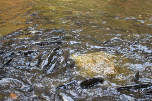 ทั้งนี้ขึ้นอยู่กับความอุดมสมบูรณ์ของอาหารธรรมชาติในแหล่งน้ำ ซึ่งนับว่าเป็นปรากฏการณ์ที่พบยาก โดยปรากฏการณ์นี้ใน 1 ปี จะเกิดขึ้นเฉพาะช่วงเดือนกุมภาพันธ์ถึงเดือนมีนาคม จากนั้นได้ลงพื้นที่ชุมชนบ้านห้วยหาด และบ้านหลักลาย ตำบลอวน อำเภอปัว จังหวัดน่าน ซึ่งเป็นพื้นที่ซึ่งทางสำนักงานการวิจัยแห่งชาติ (วช.) มหาวิทยาลัยเทคโนโลยีราชมงคลล้านนา น่าน บริษัท ไฟฟ้าหงสา จำกัด นิสิตเก่าคณะรัฐศาสตร์ จุฬาลงกรณ์มหาวิทยาลัย รุ่นที่ 18 กลุ่มคนรักป่าต้นน้ำ และตัวแทนเครือข่ายสื่อมวลชนจังหวัดน่าน ได้เข้ามาส่งเสริมในเรื่องของการทำประมงภูเขา โดยมีการนำร่องส่งเสริมให้ชาวบ้านทั้ง 2 หมู่บ้านเลี้ยงปลาปีกแดง ปลาพลวงหิน ปลาเวียน ตะพาบน้ำพื้นบ้าน (ปลาผา) ปูผา ปลาจาด และหมูด จากนั้นได้เข้าเยี่ยมชมแหล่งอนุรักษ์พันธุ์ปลาพลวงหิน ในพื้นที่น้ำตกตาดหลวง ตำบลทุ่งเฮ้า ตำบลอวน อำเภอปัว จังหวัดน่าน โดยได้รับความอนุเคราะห์จาก นายจิระพงษ์ คูหากาญจน์ ผู้อำนวยการสำนักวิจัยการอนุรักษ์ป่าไม้และพันธุ์พืช รักษาราชการแทนอธิบดีกรมอุทยานแห่งชาติ สัตว์ป่า และพันธุ์พืช