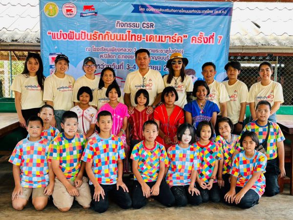 นายชัยณรงค์ เปาอินทร์ รองผู้อำนวยการ อ.ส.ค. กล่าวว่า อ.ส.ค. เป็นหน่วยงานรัฐวิสาหกิจสังกัดกระทรวงการเกษตรและสหกรณ์ ซึ่งมีบทบาทหลักในการส่งเสริมการเลี้ยงโคนมและพัฒนาอุตสาหกรรมนมในประเทศไทย และทำหน้าที่วิจัยและพัฒนาผลิตภัณฑ์นมเพื่อรองรับน้ำนมดิบของเกษตรกร ซึ่งนอกเหนือจากบทบาทดังกล่าวแล้ว อ.ส.ค. ยังมีนโยบายสำคัญด้านการแสดงความรับผิดชอบต่อสังคมและสิ่งแวดล้อม (CSR) และกิจกรรมเสริมสร้างสังคมเพื่อก่อให้เกิดการพัฒนาสู่ความยั่งยืน โดยที่ผ่านมาได้ดำเนินการมาอย่างต่อเนื่องภายใต้กิจกรรมที่หลากกลายโดยหนึ่งในกิจกรรม CSR ที่สำคัญคือการจัดทำ “โครงการแบ่งฝันปันรักกับนมไทย-เดนมาร์ค” ซึ่งปีนี้ได้จัดขึ้นต่อเนื่องเป็นปีที่ 7 ภายใต้แคมเปญ “ไทย-เดนมาร์คใกล้-ไกลก็ไปถึงเพื่อสุขภาพเด็กไทย” โดยการนำผลิตภัณฑ์นมไทย-เดนมาร์คจำนวน 30 ลัง (1,080 กล่อง) อุปกรณ์การเรียนการสอน และสิ่งของสาณารณูปโภคและบริโภคอื่นๆ นำมอบให้กับนักเรียนได้ดื่มนมคุณภาพที่ผลิตจากน้ำนมโคสดแท้ 100% ไม่ผสมนมผง พร้อมทั้งเลี้ยงอาหารกลางวันให้กับนักเรียนจำนวน 149 คน