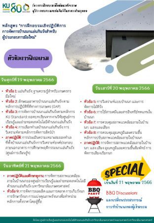 มหาวิทยาลัยเกษตรศาสตร์โดยศูนย์การเรียนรู้และถ่ายทอดเทคโนโลยีนกแอ่นกินรัง คณะวนศาสตร์ ขอเชิญผู้สนใจเข้าร่วมโครงการฝึกอบรมเพื่อพัฒนาศักยภาพผู้ประกอบการนกแอ่นกินรังในอาคารส่วนบุคคล หลักสูตร “การฝึกอบรมเชิงปฏิบัติการ การจัดการบ้านนกแอ่นกินรังสำหรับผู้ประกอบการมือใหม่” รุ่นที่ 2 ทั้งนี้เพื่อส่งเสริมผู้ประกอบการ Startup สำหรับผู้ประกอบการนกแอ่นกินรังในอาคารส่วนบุคคลให้มีความรู้ และทักษะในการจัดบ้านนกแอ่นกินรังในอาคารส่วนบุคคลให้มีมาตรฐานการปฏิบัติทางการเกษตรที่ดี เพื่อส่งเสริมให้เกิดความสำเร็จของการจัดการบ้านนกและช่วยผู้ประกอบการในการตัดสินใจสำหรับการลงทุน จัดอบรม 3 วันในวันศุกร์ที่ 19 – วันอาทิตย์ที่ 21 พฤษภาคม พ.ศ.2566 ณ อุทยานแห่งชาติหาดวนก อ.ทับสะแก จ.ประจวบคีรีขันธ์ และ ศูนย์การเรียนรู้และถ่ายทอดเทคโนโลยีด้านนกแอ่นกินรัง มหาวิทยาลัยเกษตรศาสตร์ ต.ห้วยยาง อ.ทับสะแก จ.ประจวบคีรีขันธ์ ประกอบด้วยภาคบรรยายและภาคปฏิบัติ เน้นการฝึกปฏิบัติในการจัดการบ้านนกแอ่นกินรังในอาคารส่วนบุคคล พร้อมศึกษาดูงานการจัดการสภาพแวดล้อมภายในบ้านนกของศูนย์การเรียนรู้และถ่ายทอดเทคโนโลยีนกแอ่นกินรัง มหาวิทยาลัยเกษตรศาสตร์