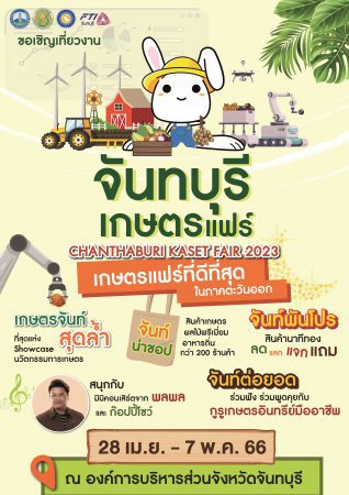 พบกับงานเกษตรครั้งยิ่งใหญ่ของภาคตะวันออก “จันทบุรีเกษตรแฟร์” โดยสำนักงานเกษตรและสหกรณ์จังหวัดจันทบุรี เป็นเจ้าบ้านเปิดรับนักท่องเที่ยวสายกินผลไม้ สายชอปของดี สายกินของอร่อย และ ผู้ประกอบการ เกษตรกร พ่อค้าคนกลาง เพื่อแสดงศักยภาพของแหล่งผลิตสินค้าทางการเกษตรที่โดดเด่นและดีที่สุดในภาคตะวันออก จึงเกิดแนวคิดในการจัดงานให้แสดงถึงอัตลักษณ์ รวบรวมความเป็นที่สุดของจันทบุรี ทำให้งานจันทบุรีเกษตรแฟร์จะเป็น “เกษตรแฟร์ที่ดีที่สุดในภาคตะวันออก” จัดระหว่างวันที่ 28 เมษายน – 7 พฤษภาคม นี้ ณ ลานขนถ่ายสินค้า องค์การบริหารส่วนจังหวัดจันทบุรี
