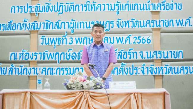 กกต.นครนายก รวมพลัง ขับเคลื่อนการเลือกตั้ง โดยจัดโครงการบูรณาการความร่วมมือของทุกภาคส่วน ร่วมกิจกรรมรณรงค์ ประชาสัมพันธ์การเลือกตั้ง กิจกรรมประชุมเชิงปฏิบัติการ ให้ความรู้ แก่แกนนำเครือข่าย ในการเลือกตั้งสมาชิกสภาผู้แทนราษฎร