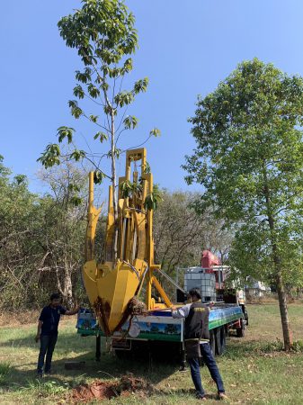 โดยรถขุดย้ายต้นไม้ที่ร่วมพัฒนานี้ รศ.ดร.ศุภกิตต์ สายสุนทร ได้อธิบายรายละเอียดว่า