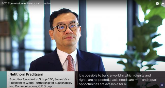 ดร.เนติธร ประดิษฐ์สาร ผู้ช่วยบริหารประธานเจ้าหน้าที่บริหาร และรองกรรมการผู้จัดการอาวุโส สำนักความร่วมมือระหว่างประเทศด้านความยั่งยืนและสื่อสารองค์กร เครือเจริญโภคภัณฑ์ กล่าวว่า “เครือเจริญโภคภัณฑ์ เคารพในเรื่องสิทธิมนุษยชนทั้งในการดำเนินธุรกิจ ทั้งห่วงโซ่คุณค่าของเครือเจริญโภคภัณฑ์ รวมถึงทั้งคู่ค้าและผู้มีส่วนได้เสีย เพื่อผลักดันให้เกิดการเปลี่ยนแปลงทั้งในระดับท้องถิ่น ไปจนถึงระดับนานาชาติ รวมถึงผลักดันนโยบาย ความหลากหลาย ความเสมอภาค แก้ไขปัญหาความเหลื่อมล้ำ เราสามารถสร้างสังคมที่เคารพซึ่งกันและกัน เคารพสิทธิมนุษยชน ตอบสนองความต้องการพื้นฐานและสร้างโอกาสเท่าเทียมกันสำหรับทุกคนได้”