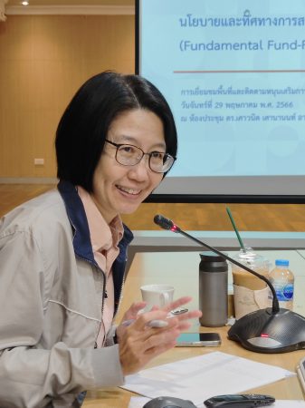 ผศ. ดร.แพรระบุว่า อยากให้หน่วยรับงบประมาณวางแผนงานสำคัญในระยะ 5 ปี ออกแบบแผนงานโครงการอย่างมีระบบและสะท้อนเป้าหมายและพันธกิจของหน่วยรับงบประมาณ มีเป้าหมายสุดท้ายและเป้าหมายรายปี ระบุผลผลิตและผลลัพธ์ที่จะส่งมอบอย่างชัดเจน ตอบสนองยุทธศาสตร์ของหน่วยงานและตอบโจทย์ยุทธศาสตร์ชาติ สามารถต่อยอดผลักดันไปรับทุนสนับสนุนเชิงกลยุทธ์เพื่อสร้างผลกระทบมากขึ้น โดยจัดลำดับความสำคัญของงานตามคุณภาพและศักยภาพในการส่งมอบผลผลิต ใช้งบประมาณอย่างคุ้มค่าและเหมาะสม