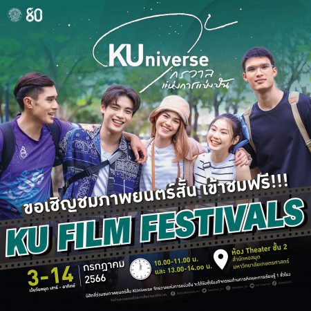 ตามคำเรียกร้อง… KUniverse : จักรวาลแห่งการแบ่งปัน พร้อมฉายให้น้องและพี่นิสิต KU บุคลากร และครอบครัว KU อีกทั้งเชิญชวนนิสิตเก่า เพื่อนของเพื่อนของเพื่อน แฟนภาพยนตร์ แฟน ๆ KU และประชาชน มาร่วมชมกันให้สนั่นจอ วันที่ 3 – 14 ก.ค. 66 นี้ เข้าชมฟรี !!! ลงทะเบียนเข้าชมหน้างาน