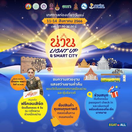 เตรียมเปิดตัว “น่าน Light Up & Smart City” พร้อมชวนเที่ยวเทศกาลท่องเที่ยววันแม่ ชม ช้อป แชะ แชร์ ที่ข่วงเมืองน่าน 11 – 14 สิงหาคม นี้