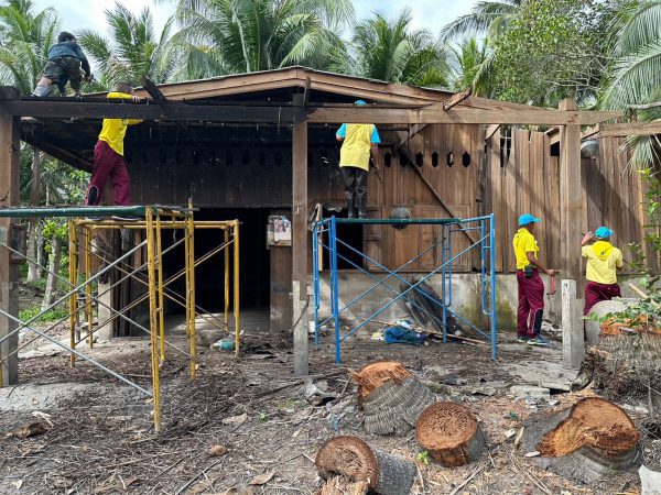 วันที่ 11 สิงหาคม 2566 ที่หมู่ 1 บ้านห้วยแห้ง ต.เขาล้าน อ.ทับสะแก จ.ประจวบคีรีขันธ์ร.ต.อ.สุทศ รักษาเวียง รองสว.(ป) ร้อยตชด.146 พร้อมด้วย ร.ต.ต.คำนึง ทองสนิท รรท.ผบ.มว.มชส.ฯ หน.ชุดช่างสนาม ขตร.มว.ตชด.1461และขตร.ร้อยตชด.146รวม12นาย ร่วมกับนายปราโมทย์ ทอดสนิท ผู้ใหญ่บ้าน ผู้นำชุมชนและจิตอาสาประจำหมู่บ้าน ปฏิบัติงานช่างจิตอาสาพัฒนาซ่อมแซมปลูกสร้างบ้านพักอาศัยให้กับนายวานิช สายน้อย อายุ67ปี ซึ่งเป็นผู้ยากไร้ประสบปัญหาบ้านพัก ที่อยู่อาศัยชำรุดทรุดโทรมและผุพัง พร้อมมอบสิ่งของอุปโภค บริโภค รื้อถอนกระเบื้องหลังคา และตัวอาคารบางส่วน เพื่อเตรียมปลูกสร้าง ซ่อมแซมใหม่