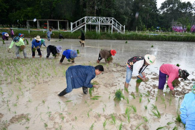 วัดป่าพิมลมังคลาราม นำชาวนาสานสายใยดำนาวันแม่เกี่ยวข้าววันพ่อ
