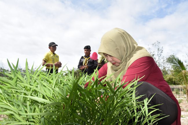 เมื่อเวลา 10.00 น. วันที่ 13 ส.ค.66 พ.ท.สุกฤษฐ์ กาญจนคลอด รอง ผบ.ทพ.45 ได้เดินทางไปยังพื้นที่การเกษตรของศูนย์เด็กกำพร้ารีอายาตุลไอตาม ซึ่งตั้งอยู่บ้านสาเมาะ ม.1 ต.บองอ อ.ระแงะ จ.นราธิวาส ที่ได้แบ่งเนื้อที่ 2 ไร่ ข้างศูนย์เด็กกำพร้าให้กับกลุ่มสตรีบ้านสาเมาะ ในการดำเนินโครงการมัสยิดสานใจสืบสานสารศาสตร์พระราชา ด้วยปรัชญาเศรษฐกิจพอเพียง ตามดำริของ พล.ต.เฉลิมพร ขำเขียว ผบ.ฉก.นราธิวาส โดยได้ดำเนินการปลูกพืชผักสวนครัวชนิดต่างๆ อาทิ มะเขือ ผักบุ้ง ถั่วฟักยาว น้ำเต้า กระเจี๊ยบ เป็นต้น พริก กะเพรา เป็นต้น รวมทั้งการเลี้ยงปลกดุก ปลาบ้าและปลาตะเพียน ในบ่อที่ได้มีการจัดสรรพื้นที่ตามพระราชดำริ ของในหลวงรัชกาลที่ 9 ซึ่งมีเจ้าหน้าที่ทหารพรานกองร้อยทหารพรานที่ 4511 เป็นพี่เลี้ยงคอยให้คำแนะนำถึงกระบวนการต่างๆ หลังจากกลุ่มสตรีได้มีการประชุมและลงมติจะร่วมมือร่วมใจเพื่อช่วยเหลือเด็กกำพร้า จำนวน 35 คน ซึ่งบิดามารดาเสียชีวิต เข้าโครงการปลูกผักเพื่อเด็กกำพร้าตามรอยพ่อหลวงรัชกาลที่ 9 แต่พื้นที่ทางการเกษตรดังกล่าว เคยถูกกลุ่มผู้ก่อเหตุรุนแรงลอบวางระเบิดเมื่อวันที่ 4 ส.ค. 66 ที่ผ่านมา ในบริเวณแปลงผักข้างประตูทางเข้า แต่ขณะเกิดเหตุโชคดีไม่มีกลุ่มสตรีเดินผ่าน จากเหตุการณ์ดังกล่าวส่งผลทำให้กลุ่มสตรีเกิดความวิตกกังวลแต่จะขอสานต่ออดุมการณ์ ที่จะให้การช่วยเหลือเด็กกำพร้า จากผลผลิตที่เก็บเกี่ยวได้ จะนำไปมอบให้นายอารียัด เจ๊ะเต๊ะ ซึ่งเป็นโต๊ะอิหม่ามมัสยิดลูโบะบราแง เพื่อนำรายได้ดังกล่าวไปซื้ออุปกรณ์การเรียนการสอน รวมทั้งของใช้ที่จำเป็นในชีวิตประจำวัน