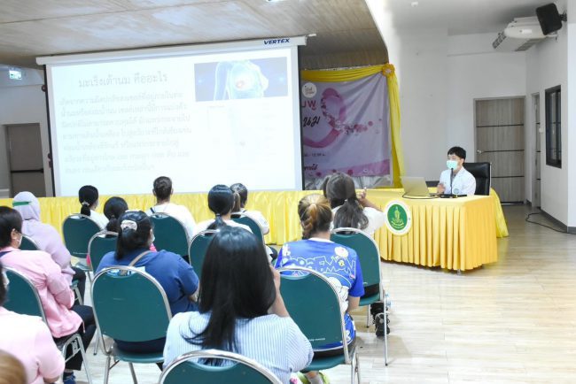วันที่ 19 สิงหาคม  โรงพยาบาลเจริญกรุงประชารักษ์ ร่วมกิจกรรมวาโก้โบว์ชมพู สู้มะเร็งเต้านม ณ สำนักงานเขตสาทร โดยมี นายชาติชาย กุละนำผล ผู้อำนวยการสำนักงานเขตสาทร เป็นประธานเปิดกิจกรรม โดยทางโรงพยาบาลเจริญกรุงประชารักษ์ นายแพทย์กมลรัชฎ์ จงธนากร หัวหน้ากลุ่มงานประกันสุขภาพ และบุคลากรของโรงพยาบาลฯ ร่วมกิจกรรม พร้อมบรรยายให้ความรู้เรื่องมะเร็งเต้านม โดย นายแพทย์วรอรรถ คุณวุฒิวานิช นายแพทย์ชำนาญการ กลุ่มงานอายุรกรรม และสาธิตวิธีการตรวจมะเร็งเต้านมด้วยตัวเอง ให้ความรู้เรื่องโภชนาการต้านมะเร็ง แก่ประชาชนที่มาร่วมกิจกรรม ณ สำนักงานเขตสาทร
