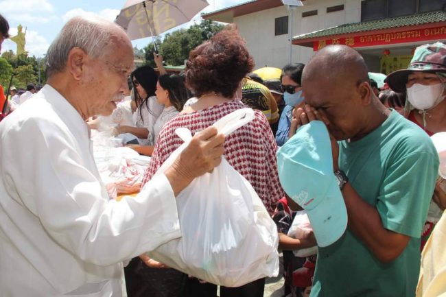 โดยมีรายนามผู้บริจาคหีบศพ 900 ใบ และ ถุงปันสุขจำนวน 1,038 ใบ ดังนี้ นายยุทธนา หยิมการุณ อดีตอธิบดีกรมธนารักษ์และ ที่ปรึกษา บริษัท ทิพยประกันภัย จำกัด บริจาคโลงศพ 100 ใบ, นายสุชาติ-นางราณี ซื่อสัจจกุล กรรมการผู้จัดการ บริษัท ไทย เอเซีย พี.อี.ไพพ์ จำกัด และคณะ บริจาคโลงศพ 100 ใบ, นายบุญเทียม โชควิวัฒน์ และคณะ บริจาคโลงศพ 100 ใบ, นายวรพล เชอไพศาล และคณะ บริจาคโลงศพ 100 ใบ, นายก๊วย อู่ ล้ง บริจาคโลงศพ 100 ใบ, นายศุภวัฒน์ อัศววรชัย ผู้บริหารบริษัท ที.ซี.ดีเวลลอปเม้นท์ จำกัด บริจาคโลงศพ 100 ใบ, นายพิบูลย์ วีระชาติสกุลชัย พร้อมคณะ บริษัท ปากช่องธีระบริการ จำกัด บริจาคโลงศพ 50 ใบ, นายธนกร สิริบุญสุข พร้อมคณะ บริจาคชุดตรวจ atk 200,000 ชุด และบริจาคโลงศพ 50 ใบ, มูลนิธิสว่างดาวดึงส์ธรรม พร้อมคณะ บริจาคโลงศพ 100 ใบ ทิ้งกระจาด 150,000 บาท