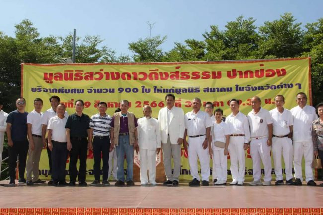 วันเสาร์ที่ 19 สิงหาคม 2566 เริ่มเวลา 09.39 น. ที่มูลนิธิสว่างดาวดึงส์ธรรม-อุทยานวิหารเซียน อำเภอปากช่อง จังหวัดนครราชสีมา นายยุทธนา หยิมการุณ อดีตอธิบดีกรมธนารักษ์ และที่ปรึกษา บริษัท ทิพยประกันภัย จำกัด (มหาชน) ให้เกียรติมาเป็นประธานในงานบริจาคหีบศพ 900 ใบ มอบให้แก่มูลนิธิ และสมาคมฯ ประจำปี 2566 (ปีที่ 39) โดยมีท่านอาจารย์วิชัย ชูชัยเจริญ ประธานมูลนิธิสว่างดาวดึงส์ธรรม-อุทยานวิหารเซียน-ปากช่อง ให้การต้อนรับพร้อมกล่าวถึงวัตถุประสงค์ในการจัดงานประจำปีฯ ในครั้งนี้ พร้อมทั้งขอขอบท่านคุณผู้มีจิตศรัทธา ท่านผู้ใจบุญทุกๆท่าน ที่ได้ร่วมบริจาคหีบศพจำนวน 900 ใบ และมอบถุงยังชีพ จำนวน 1,038 ชุด เพื่อมอบให้กับประชาชนที่อยู่ในพื้นที่ตำบลปากช่อง