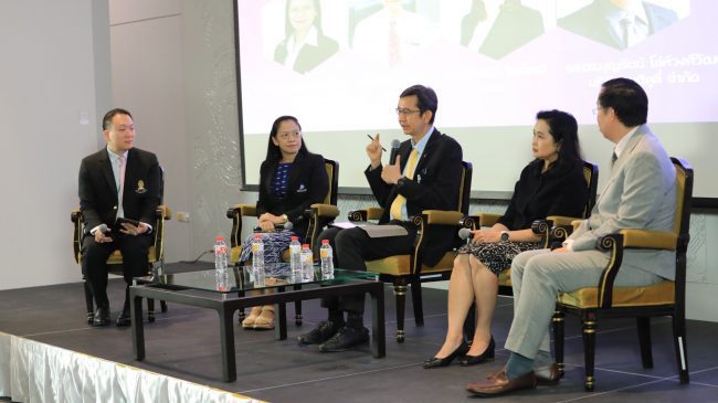 เช่นเดียวกับการเสวนา “ระบบสุขภาพเพื่อสร้างสุขภาวะที่ดีของคนไทย และผลงานวิจัยนวัตกรรมสู่การใช้จริงภายใต้มาตรฐานสากล” ที่สะท้อนภาพ ววน. ที่มีผลต่อการสร้างสุขภาวะ งานวิจัยและนวัตกรรม รวมถึงนโยบายและข้อเสนอแนะที่จะช่วยผลักดัน ววน. ให้เกิดผลกระทบที่ดีต่อสุขภาพของคนไทย โดย ผศ. ดร.จรวยพร ศรีศศลักษณ์ ผู้จัดการงานวิจัยอาวุโส สถาบันวิจัยระบบสาธารณสุข (สวรส.) นพ.นคร เปรมศรี ผู้อำนวยการสถาบันวัคซีนแห่งชาติ (สวช.) ศ. ดร.ศันสนีย์ ไชยโรจน์ ประธานอนุกรรมการแผนงานกลุ่มสุขภาพและการแพทย์ บพข. และ รศ.ดร.บุญรัตน์ โล่ห์วงศ์วัฒน คณะวิศวกรรมศาสตร์ จุฬาลงกรณ์มหาวิทยาลัย ในฐานะผู้บริหารสูงสุดและผู้ร่วมก่อตั้งบริษัท เมติคูลี่ จำกัด ให้ข้อเสนอแนะว่าการทำงานในระบบ ววน. ต้องกำกับดูแลและพัฒนาร่วมกันตั้งแต่ต้นน้ำถึงปลายน้ำ โดยมีผู้จัดการงานวิจัยและนวัตกรรมเป็นโซ่ข้อกลางนำงานไปสู่ผู้ใช้ประโยชน์จริง