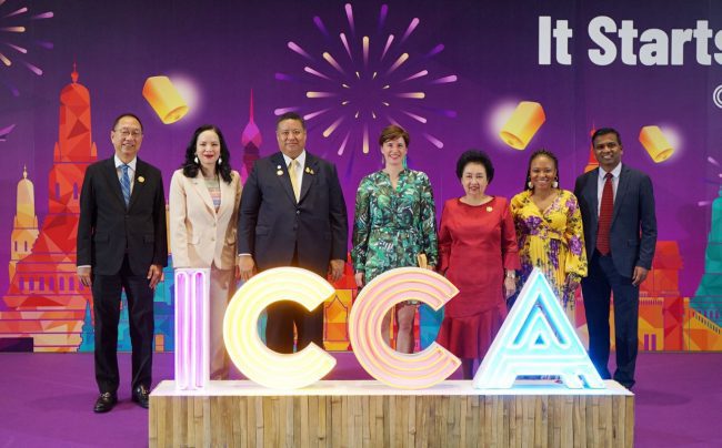 ดร.อรรชกา สีบุญเรือง ประธานกรรมการส่งเสริมการจัดประชุมและนิทรรศการ ทีเส็บ (ลำดับ 5 จากซ้าย) พร้อมด้วย นายจิรุตถ์ อิศรางกูร ณ อยุธยา ผู้อำนวยการสำนักงานส่งเสริมการจัดประชุมและนิทรรศการ (องค์การมหาชน) หรือ ทีเส็บ (ลำดับ 3 จากซ้าย) ร่วมให้การต้อนรับ นางมาธา โกเมส ประธานสมาคมการประชุมนานาชาติ หรือ ICCA (กลาง) นายเซนทิล โกพินาท ประธานเจ้าหน้าที่บริหาร ICCA (ขวา) และผู้เข้าร่วมงาน The 62nd International Congress and Convention Association Congress 2023 (ICCA Congress 2023) งานประชุมระดับนานาชาติที่มีผู้เข้าร่วมนับพันรายจากเกือบ 100 ประเทศทั่วโลก โดยมี ดร.พสุ โลหารชุม กรรมการฯ ทีเส็บ (ซ้าย) และนางสาวปนิษฐา บุรี นายกสมาคม TEA (ลำดับ 2 จากซ้าย) มาร่วมงานด้วย ณ ทรู ไอคอน ฮอลล์ ไอคอนสยาม เมื่อเร็วๆ นี้