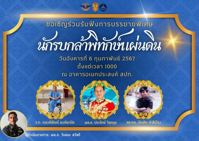 วันอังคารที่ 6 กุมภาพันธ์ 2567 พลเอก ทรงวิทย์ หนุนภักดี ผู้บัญชาการทหารสูงสุด บรรยายพิเศษ ในกิจกรรม “สัปดาห์นักรบกล้าพิทักษ์แผ่นดิน“ เนื่องในวันทหารผ่านศึก ประจำปี 2567 จัดโดย สถาบันวิชาการป้องกันประเทศ กองบัญชาการกองทัพไทย ณ อาคารเอนกประสงค์ สถาบันวิชาการป้องกันประเทศ ถนนวิภาวดีรังสิต เขตดินแดง กรุงเทพฯ