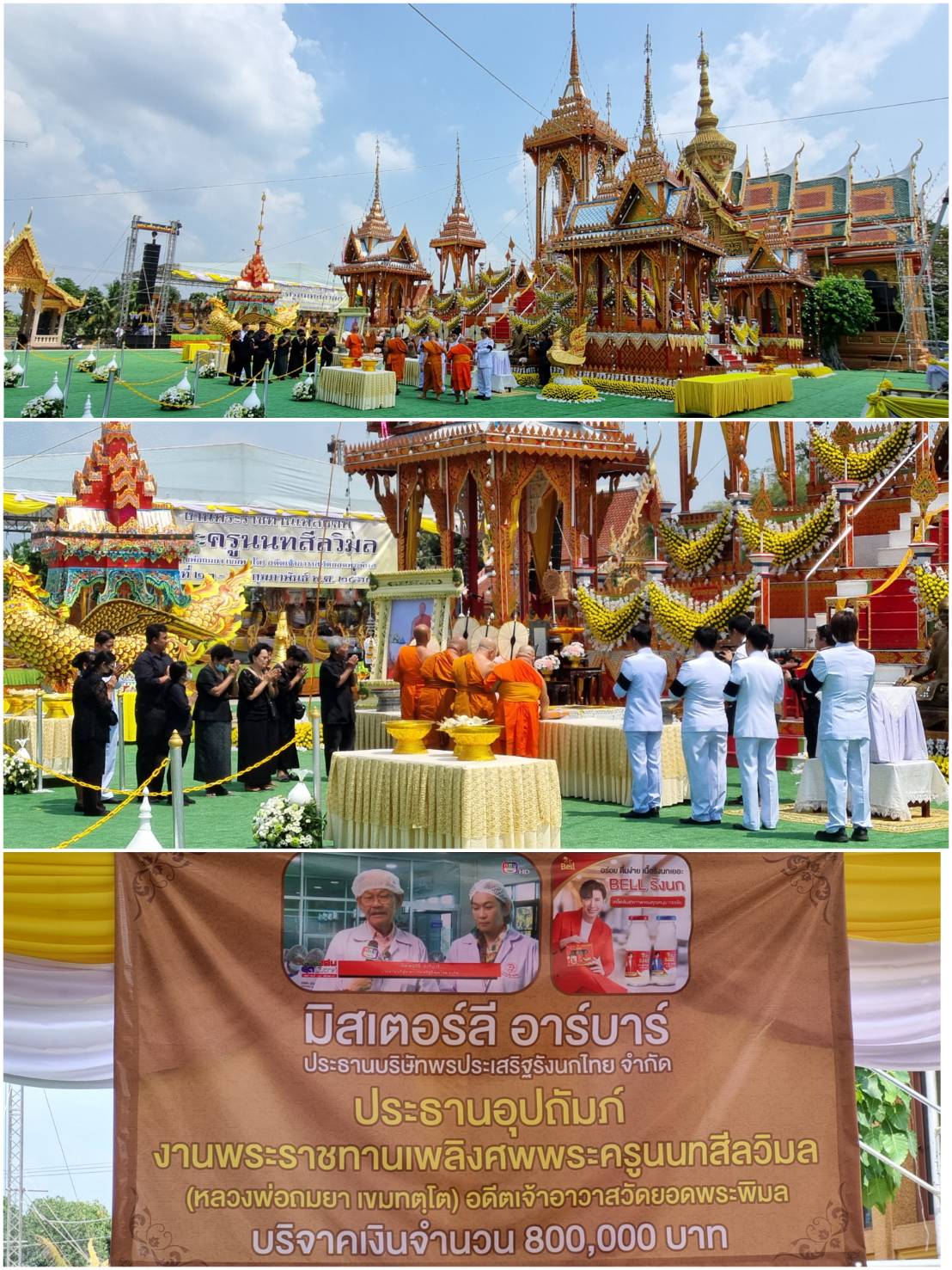 ทั้งนี้ บริษัท พระประเสริฐรังนกไทย จำกัด นำโดยมิสเตอร์ลี อาร์บาร์ เป็นศิษยานุศิษย์ที่เคารพศรัทธาพระครูนนทสีลวิมล โดยเป็นประธานอุปถัมภ์ตั้งแต่พิธีสวด โดยบริจาค 200,000 บาท หล่อรูปเหมืนหลวงพ่อ บริจาค 500,000 บาท และพิธีพระราชทานเพลิงศพ พระครูนนทสีลวิมล (หลวงพ่อถมยา เขมทตฺโต) อดีตเจ้าอาวาสวัดยอดพระพิมล โดยบริจาคเงินจำนวน 400,000 บาท เพื่อเป็นค่าใช้จ่ายในการจัดงานด้านต่างๆ ต้องขอขอบคุณ มิสเตอร์ลี เป็นอย่างมาก นายสุรสีห์ ศรีอินทร์สุทธิ์ ประธานหอการค้าจังหวัดนนทบุรีและอดีตกำนัน กล่าว