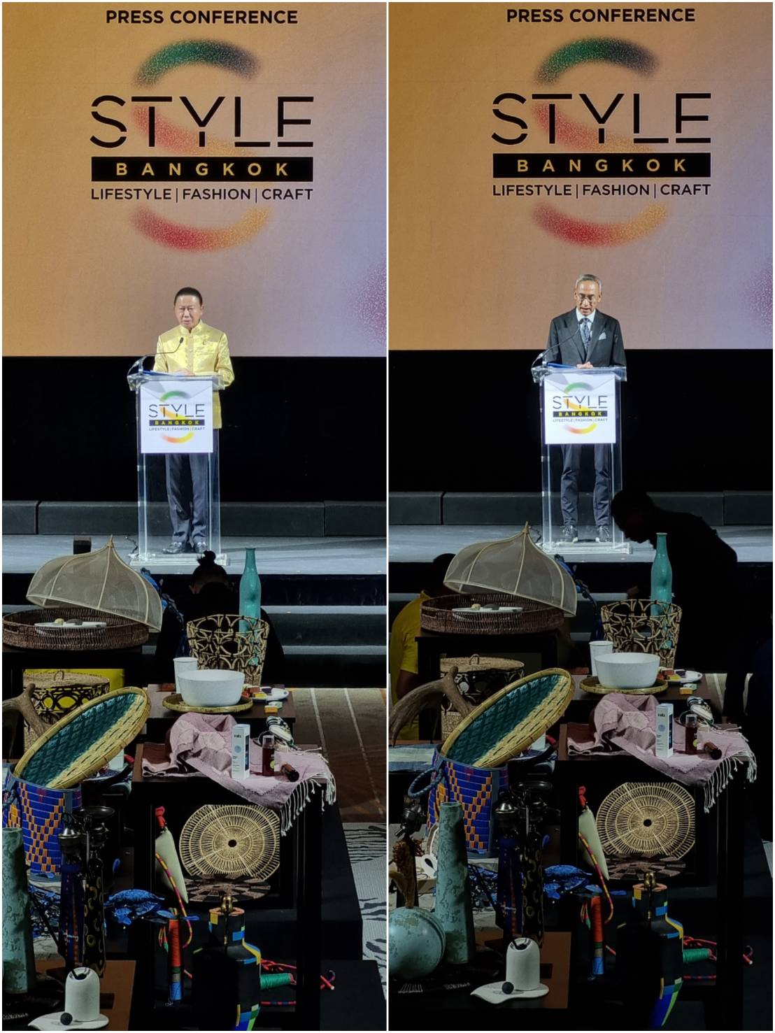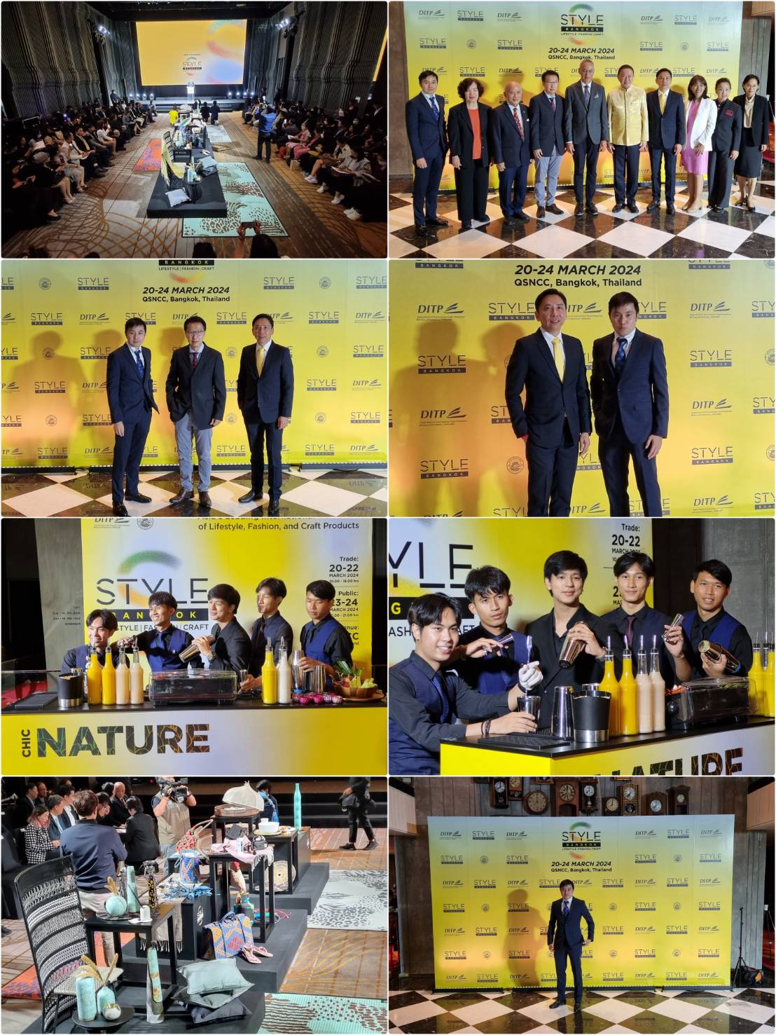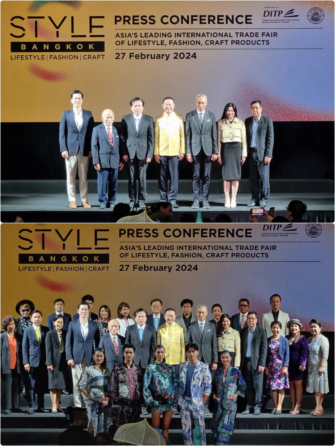 วันที่ 27 กุมภาพันธ์ 2567 ที่ห้องบอลรูม โรงแรม SO/Bangkok นายภูสิต รัตนกุล เสรีเริงฤทธิ์ อธิบดีกรมส่งเสริมการค้าระหว่างประเทศ และนายสนั่น อังอุบลกุล ประธานกรรมการสภาหอการค้าแห่งประเทศไทย ร่วมกันแถลงข่าวการจัดงาน STYLE Bangkok 2024 ซึ่งจะจัดภายใต้ธีม “ChicNature” โชว์สินค้าไทยในกลุ่มเฟอร์นิเจอร์ ของขวัญ ของชำร่วย ของตกแต่งบ้าน เครื่องใช้บนโต๊ะอาหารและในครัว ของเล่น ผลิตภัณฑ์สปา สินค้าแฟชั่น ผ้าผืน เครื่องหนัง และวัตถุดิบใหม่ ๆ ไปจนถึงสินค้าสำหรับธุรกิจ Hospitality โรงแรม และงานโปรเจคต่าง ๆ โดยมุ่งเจาะตลาดผู้ซื้อจากกลุ่มตลาดศักยภาพ อาทิ จีน ญี่ปุ่น สหรัฐอเมริกา เอเชียใต้ ตะวันออกกลาง ยุโรป และ อาเซียน