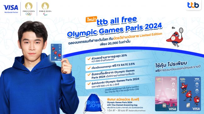 กับบัตรเดบิตวีซ่า ttb all free Limited Edition หน้าบัตร Olympic Paris 2024