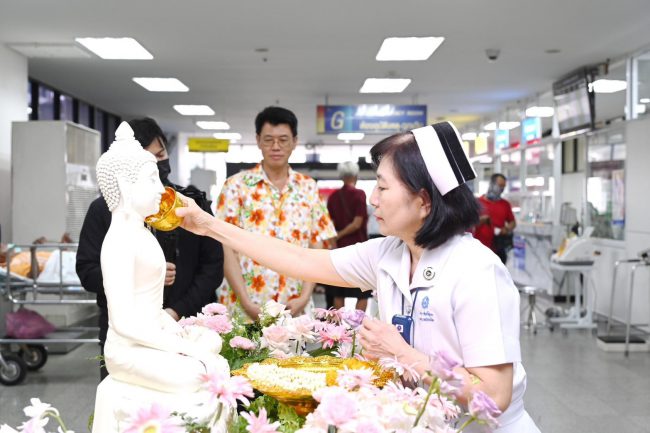 ผู้บริหาร และบุคลากรของโรงพยาบาลเจริญกรุงประชารักษ์ ร่วมสรงน้ำพระพุทธรูป เนื่องในเทศกาลสงกรานต์
