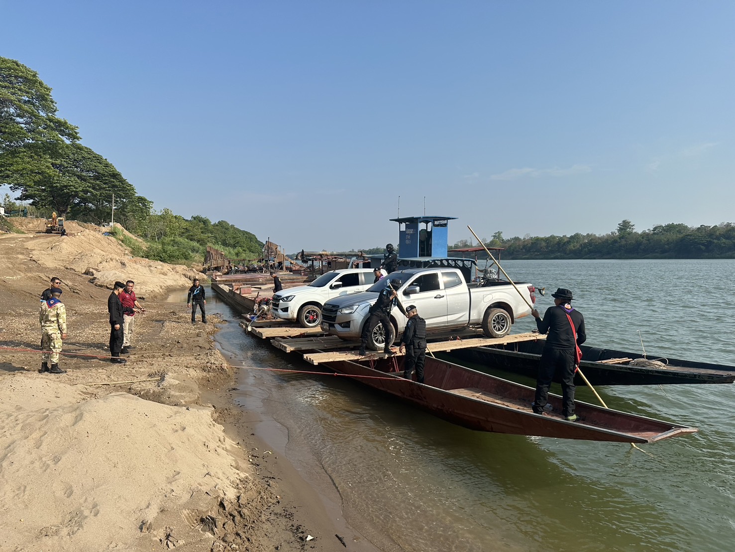 เมื่อวันที่ 9 พฤษภาคม 2567 เวลา 01.00 น. พ.อ.อินทราวุธ ทองคำ ผบ.ฉก.ทพ.21 ร.ท.วัชรสรณ์ เชื้อไพบูลย์ ผบ.ร้อยทหารพราน 2105 มุกดาหาร ฉก.ทพ.21 บก. กกล.สุรศักดิิ์มนตรี (หน่วยงานหลัก) ร่วมกับ ร้อย.ฉก.ทพ.23 กกล.สุรนารี สนธิกำลังร่วมกันทำการลาดตะเวนเฝ้าตรวจริมตลิ่งแม่น้ำโขง ในพื้นที่รอยต่อระหว่าง บ.นาห้วยกอก ต.ห้วยกอก อ.ดอนตาล จ.มุกดาหาร กับ บ.นาสีดา ต.ชานุมาน อ.ชานุมาน จ.อำนาจเจริญ ได้ตรวจพบกลุ่มบุคคล จำนวนประมาณ 5 คน กำลังทำการลักลอบนำรถยนต์ ขึ้นเรือแพเตรียมการนำข้ามแม่น้ำโขงไปยังฝั่ง สปป.ลาว ที่บริเวณ พิกัด VD 594012 บ.ตาลใหม่ ม.11 ต.ดอนตาล อ.ดอนตาล จ.มุกดาหาร ชุดลาดตระเวน จึงแสดงตัว พร้อมเข้าตรวจสอบ เมื่อเห็นเจ้าหน้าที่บุคคลกลุ่มดังกล่าวได้กระโดดน้ำหลบหนีไป ชุดลาดตระเวน จึงได้ทำการตรวจยึด รถยนต์จำนวน 2 คัน เป็นรถยนต์ ยี่ห้อ ISUZU รุ่นd-max สีขาว ทะเบียน กล 6810 ราชบุรี และรถยนต์ ยี่ห้อ ISUZU รุ่น d-max สีเทา ทะเบียน บต 5130 พังงา และเรือเหล็กพร้อมเครื่องยนต์ จำนวน 2 ลำ จึงได้ร่วมกันทำการตรวจยึดนำส่งพนักงานสอบสวน สภ.ดอนตาลดำเนินการตามกฎหมายต่อไป