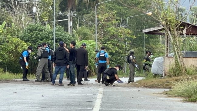 เมื่อเวลา 06.30 น. วันที่ 10 พ.ค.67 พ.ต.ต.อรรถพล สลับเพชร สว.สภ.ปะลุกาสาเมาะ อ.บาเจาะ จ.นราธิวาส รับแจ้งมีเหตุระเบิดเกิดขึ้นที่โคนเสาไฟฟ้าริมถนน 4168 สายต้นไทย – กะพ้อ ช่วงบริเวณบ้านบาตู ม.6 ต.ปะลุกาสาเมาะ อ.บาเจาะ จึงรายงานให้ผู้บังคับบัญชาทราบ พร้อมร่วมเดินทางไปตรวจสอบจุดเกิดเหตุกับ น.อ.บดินทร์ นิธิอุทัย ผบ.ฉก.ทพ.นย.ทร. น.อ.สันติ เกศศรีพงษ์ศา ผบ.ฉก.นย.ทร. เจ้าหน้าที่ชุดเก็บกู้และทำลายวัตถุระเบิด นปพ.กองกำกับการตำรวจภูธร จ.นราธิวาส เจ้าหน้าที่กองพิสูจน์หลักฐาน จ.นราธิวาส และกำลังเจ้าหน้าที่ตำรวจทหารฝ่ายปกครองจำนวนหนึ่ง รุดเดินทางไปตรวจสอบที่เกิดเหตุ