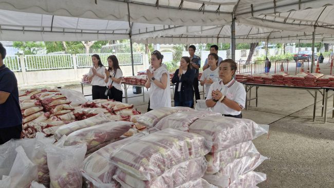 นายกสมาคมสมาชิกรัฐสภาไทย นายอนันตชัย คุณานันทกุลและครอบครัว ตักบารตแจกทานข้าวสารอาหารแห้งแก่ประชาชน