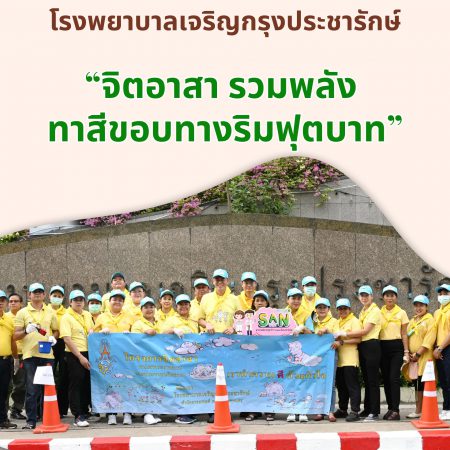 วันที่ 26 พฤษภาคม 2567 นายเศรษฐฤกษ์ ดาวอรุณ รองผู้อำนวยการโรงพยาบาลเจริญกรุงประชารักษ์ ฝ่ายบริหาร และบุคลากรของโรงพยาบาลฯ ร่วมกิจกรรมจิตอาสาพัฒนาพื้นที่โดยรอบโรงพยาบาลเจริญกรุงประชารักษ์ จัดโดย สำนักงานเขตบางคอแหลม โดยมี นางวาสนา บูรณกิตติโสภณ ผู้อำนวยการเขตบางคอแหลม และคณะจิตอาสา ร่วมกิจกรรมทาสีขอบทางฟุตบาท ระยะทางตั้งแต่แยกถนนตกถึงบริเวณหน้าโรงพยาบาลเจริญกรงประชารักษ์