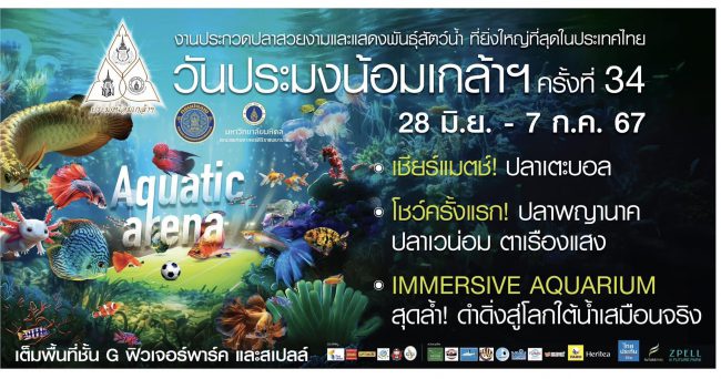 สิ้นสุดการรอคอย !!! งานวันประมงน้อมเกล้าฯ ครั้งที่ 34 ในธีม “Aquatic Arena : สนามแข่งขันประชันความงาม–ท้าประลองความแข็งแกร่งของแก๊งสัตว์น้ำ” ภายใต้คอนเซ็ปต์ Miracle Style with Aquatic Life