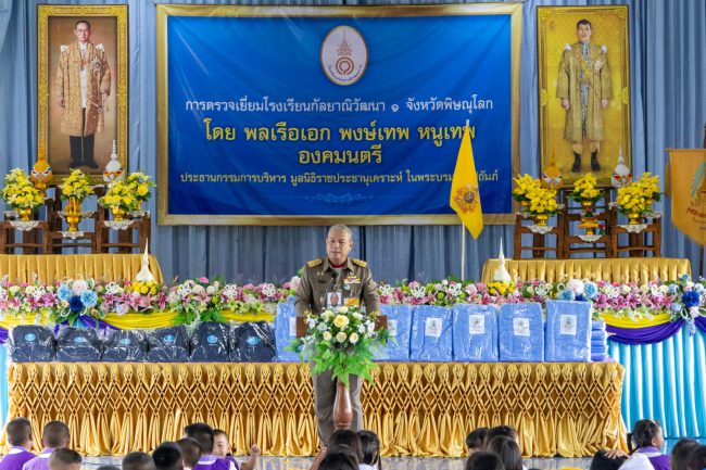 เมื่อเวลา 10.00 น. วันที่ 5 กรกฎาคม 2567 ณ โรงเรียนกัลยาณิวัฒนา 1 อำเภอนครไทย จังหวัดพิษณุโลก พลเรือเอก พงษ์เทพ หนูเทพ องคมนตรี ประธานกรรมการบริหารมูลนิธิราชประชานุเคราะห์ ในพระบรมราชูปถัมภ์ พร้อมคณะ ลงพื้นที่ตรวจเยี่ยมโรงเรียนประชานุเคราะห์ โรงเรียนที่มูลนิธิให้การสนับสนุนและโรงเรียนในโครงการกองทุนการศึกษา โดยมีนายภูสิต สมจิตต์ ผู้ว่าราชการจังหวัดพิษณุโลก ให้การต้อนรับ พร้อมด้วยหัวหน้าส่วนราชการ คณะครู นักเรียน และผู้เกี่ยวข้อง ร่วมต้อนรับและสรุปผลการดำเนินงาน
