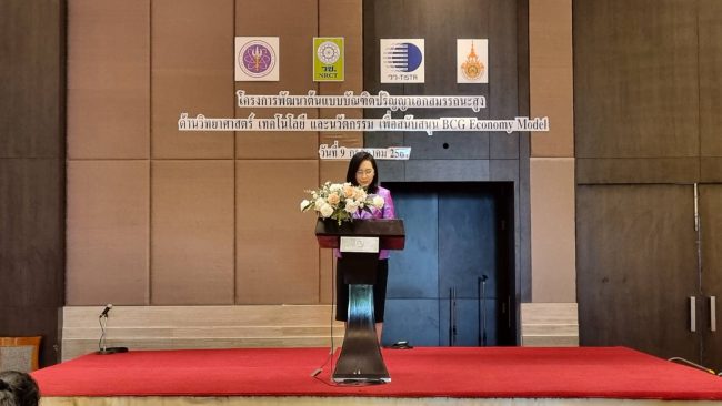 กระทรวงการอุดมศึกษา วิทยาศาสตร์ วิจัยและนวัตกรรม (อว.) โดย สถาบันวิจัยวิทยาศาสตร์และเทคโนโลยีแห่งประเทศไทย (วว.) ร่วมกับ มหาวิทยาลัยเทคโนโลยีราชมงคลธัญบุรี ภายใต้การสนับสนุนทุนวิจัยจาก สำนักงานการวิจัยแห่งชาติ (วช.) จัดการประชุมเสวนา หัวข้อ “โครงการพัฒนาต้นแบบบัณฑิตปริญญาเอกสมรรถนะสูงด้านวิทยาศาสตร์ เทคโนโลยีและนวัตกรรม เพื่อสนับสนุน BCG Economy Model” ในวันที่ 9 กรกฎาคม 2567 ณ โรงแรมรามาการ์เด้นส์ กรุงเทพฯ เพื่อร่วมขับเคลื่อนตอบโจทย์การสร้างกำลังคน รองรับกลุ่มอุตสาหกรรมอนาคต โดยการพัฒนาบัณฑิตปริญญาเอกให้มีทักษะด้านการวิจัยและสมรรถนะด้านสังคม เพื่อให้มีความสามารถในการยกระดับงานวิจัยระดับห้องปฏิบัติการสู่การผลิตจริง สามารถขยายผลสู่เชิงพาณิชย์และสร้างมูลค่าผลกระทบทางเศรษฐกิจ สังคมและสิ่งแวดล้อม อย่างยั่งยืน