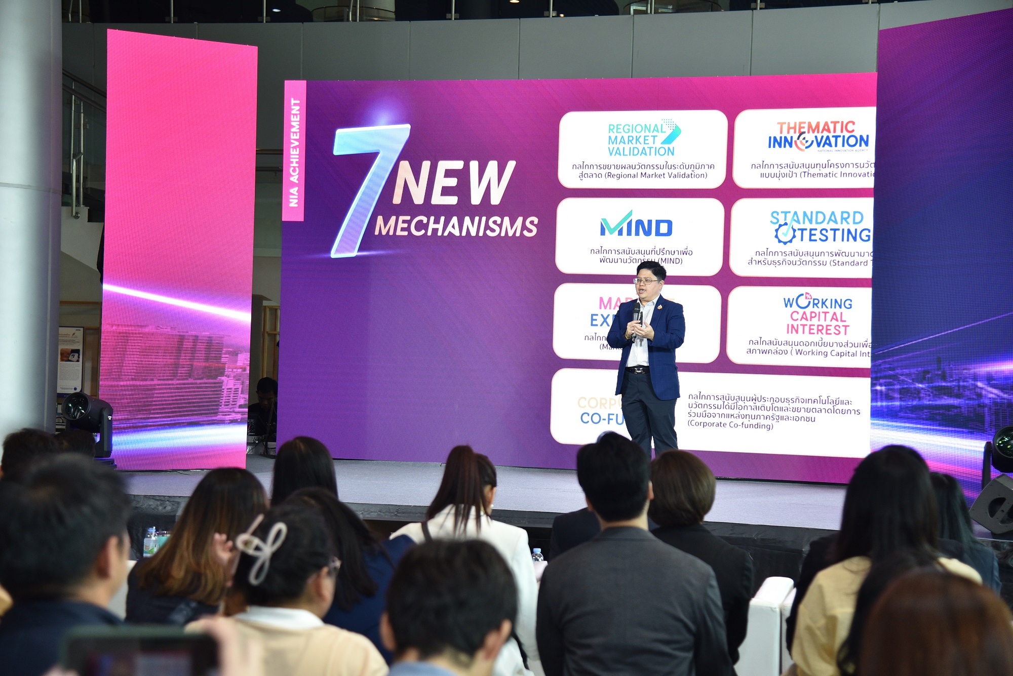 ดร.สุรอรรถ ศุภจัตุรัส รองผู้อำนวยการด้านนวัตกรรมเพื่อเศรษฐกิจและสังคม กล่าวว่า ที่ผ่านมา NIA เร่งสร้างบริษัทนวัตกรรมให้มีจำนวนเพิ่มขึ้น และผลักดันให้โครงสร้างธุรกิจมีความแข็งแกร่ง โดยมี “แหล่งเงินทุน” เป็นปัจจัยสำคัญที่จะช่วยอำนวยความสะดวกให้กลุ่มเอสเอ็มอี สตาร์ทอัพ วิสาหกิจเพื่อสังคม และวิสาหกิจชุมชนเข้าถึงได้ง่ายและได้รับการจัดสรรอย่างทั่วถึง โดยในปีนี้ NIA ได้พัฒนากลไกการสนับสนุนเงินทุนรูปแบบใหม่ เพื่อเติมเต็มและตอบโจทย์การขยายผลธุรกิจนวัตกรรมให้เติบโตและไปสู่ตลาดได้อย่างยั่งยืนมากขึ้น ผ่าน 7 กลไกหลัก ได้แก่ 1. กลไกการขยายผลนวัตกรรมในระดับภูมิภาคสู่ตลาด สำหรับการทดสอบตลาด การปรับปรุงผลิตภัณฑ์หรือบริการนวัตกรรม ให้สามารถขยายผลเชิงพาณิชย์และฐานลูกค้าใหม่ 2. กลไกทุนโครงการนวัตกรรมแบบมุ่งเป้า สำหรับทดสอบความเป็นไปได้ทางการตลาดของผลิตภัณฑ์หรือบริการนวัตกรรม การปรับปรุงผลิตภัณฑ์หรือบริการนวัตกรรมให้ตอบโจทย์ตลาดเป้าหมายมากขึ้น การประเมินความคุ้มค่าทางเศรษฐศาสตร์และการลงทุน 3. กลไกการสนับสนุนที่ปรึกษาเพื่อพัฒนานวัตกรรม สำหรับจ้างที่ปรึกษา การปรับปรุงกระบวนการดำเนินงานภายในองค์กรด้านกลยุทธ์ธุรกิจ การตลาด ทรัพย์สินทางปัญญา การบัญชี การเงินและการลงทุน การค้าระหว่างประเทศ 4. กลไกการทดสอบผลิตภัณฑ์ให้สอดคล้องกับมาตรฐานที่เกี่ยวข้อง สำหรับจ้างที่ปรึกษา การปรับปรุงกระบวนการดำเนินงานภายในองค์กร การวิเคราะห์ทดสอบ การทวนสอบและประเมินผล เพื่อขอขึ้นทะเบียนผลิตภัณฑ์หรือขอรับรองมาตรฐานที่สำคัญต่อการเติบโตทางธุรกิจ 5. กลไกการขยายธุรกิจนวัตกรรม เพื่อทดสอบนวัตกรรมในหน่วยงานภาครัฐและเอกชน สำหรับขยายธุรกิจสู่เชิงพาณิชย์ของธุรกิจนวัตกรรมในกลุ่มลูกค้าเป้าหมายพร้อมกับการประเมินความคุ้มค่าทางเศรษฐศาสตร์และการดำเนินธุรกิจ 6. กลไกสนับสนุนดอกเบี้ยบางส่วนเพื่อเสริมสภาพคล่อง สำหรับเพิ่มสภาพคล่องเพื่อการเติบโตของธุรกิจนวัตกรรม และ 7. กลไกการสนับสนุนผู้ประกอบธุรกิจเทคโนโลยีและนวัตกรรมได้มีโอกาสเติบโตและขยายตลาดโดยการร่วมมือจากแหล่งทุนภาครัฐและเอกชน หรือ Corporate CO – Funding สำหรับสนับสนุนกิจกรรมเกี่ยวเนื่องกับการพัฒนาธุรกิจให้เติบโต เช่น การพัฒนาผลิตภัณฑ์ การตลาด การเพิ่มกำลังการผลิต การขยายทีม และการจัดการทรัพย์สินทางปัญญา และมีกำหนดเงื่อนไขการส่งคืนเมื่อโครงการประสบความสำเร็จเชิงพาณิชย์