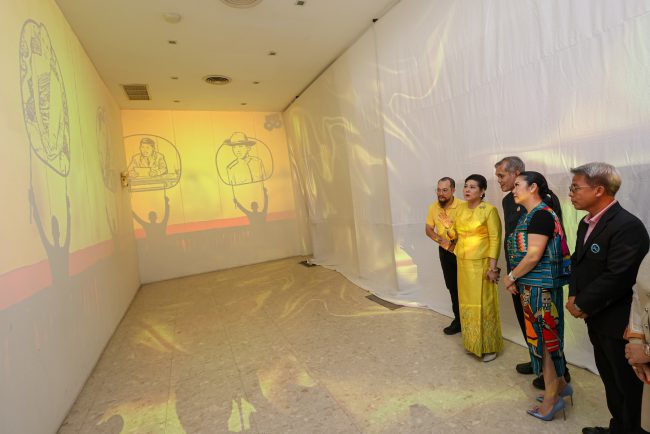 ภายในงานได้จัดแสดงผลงานศิลปะเฉลิมพระเกียรติสืบสานงานศิลป์ ๒ แผ่นดิน ซึ่งเป็นปรากฏการณ์ครั้งแรกที่เป็นการรวมผลงานที่ทรงคุณค่าของศิลปินแห่งชาติ ๒๘ ศิลปินร่วมสมัยชั้นนำ และ ๙๙ ผลงานของผู้ชนะการแข่งขัน จิตรกรรมนักเรียนบนพัดจีบกล้า ๙ ยั่งยืน จาก ๑๐ สถาบันระดับมัธยมศึกษาชั้นนำ ในรูปแบบประติมากรรมและจิตรกรรมสุดงดงามอลังการ รวมถึงการนำผลงานแอนิเมชั่น ๓ มิติ Digital Transform มานำเสนอเรื่องราวพระราชประวัติ พระราชกรณียกิจ พระอัจฉริยภาพ สร้างการรับรู้แก่ประชาชนชาวไทยทุกหมู่เหล่า พร้อมกิจกรรมเวิร์คช็อปตอกลาย “บวร ๑๐” อนุรักษ์ สืบสานศิลปะการตอกหนังไทย เฉพาะวันเสาร์ที่ ๒๐ ก.ค และวันอาทิตย์ที่ ๒๑ ก.ค. ที่จะพาทุกคนไปสัมผัสประสบการณ์การเป็นศิลปิน