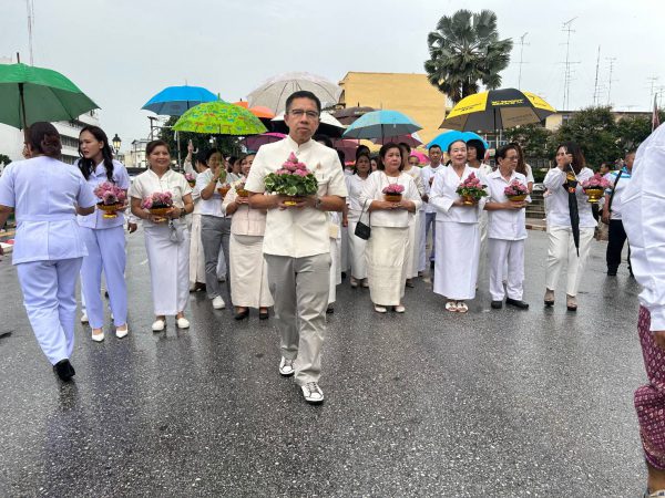 ผู้ว่าราชการจังหวัดพิษณุโลกนำข้าราชการเอกชน ประชาชนนำขบวนแห่พระพุทธชินราชจำลอง และถวายดอกบัว 22567 ดอก