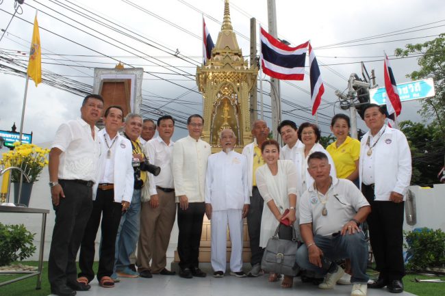 และในช่วงบ่ายวันนี้ เวลา 13:18 น. สมาคมหนังสือพิมพ์แห่งประเทศไทย ในพระบรมราชูปถัมภ์ ได้รับเกียรติจากท่านอาจารย์วิชัย ชูชัยเจริญ (ซินแสจู) ประธานมูลนิธิสว่างดาวดึงส์ธรรม ให้เกียรติมาเป็นประธานในพิธีอัญเชิญพระสยามเทวาธิราช ขึ้นบนบุษบก ทำจากสแตนเลสอย่างดี มีรูปแบบที่สวยงาม ซึ่งถอดแบบมาจากบุษบกไม้นับร้อยปี โดย สมาคมหนังสือพิมพ์แห่งประเทศไทย ในพระบรมราชูปถัมภ์ มีวัตถุประสงค์เพื่อเป็นที่ยึดเหนี่ยวจิตใจให้กับคณะกรรมการ-สมาชิก และคนในวงการสื่อมวลชน โดยได้รับการสนับสนุนจาก นายขจรศักดิ์ จิรรัตน์จรัสธร ประธาน บจก.ฐาปนินทร์ พร้อมผู้บริหารฯ ร่วม ดำเนินการจัดสร้างรูปแบบบุษบกเป็นสแตนเลสอย่างดีสวยงามตระการตา ซึ่งมีหนึ่งเดียวในประเทศไทย และในโอกาสนี้ยังได้รับเกียรติจาก นายวีระศักดิ์ โค้วสุรัตน์ อดีตรัฐมนตรีว่าการกระทรวงท่องเที่ยวและกีฬา/อดีตสมาชิกวุฒิสภา ที้ให้เกียรติมาเป็นประธานในพิธีร่วมอัญเชิญพระสยามเทวาธิราช ขึ้นประดิษฐานบนบุษบกในครั้งนี้ พร้อมทั้งคณะกรรมการบริหารสมาคมหนังสือพิมพ์แห่งประเทศไทย ในพระบรมราชูปถัมภ์, คณะกรรมการบริหารสมาคมหนังสือพิมพ์ส่วนภูมิภาคแห่งประเทศไทย (สภท.59ปี) และพี่น้องสื่อมวลชน ที่ให้เกียรติมาร่วมงานมงคลในครั้งนี้เป็นจำนวนมาก ซึ่ง องค์พระสยามเทวาธิราช บนบุษบกแห่งนี้ จะเป็นศูนย์กลางยึดเหนี่ยวจิตใจของพี่น้องสื่อมวลชนไทย ในอนาคตต่อไป