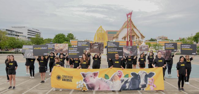 Sinergia Animal (ซิเนอร์เจีย แอนนิมอล) องค์กรพิทักษ์สัตว์ระดับนานาชาติจากบราซิล ระดมนักกิจกรรมกว่า 44 ชีวิตจาก 6 ประเทศ ได้แก่ บราซิล อาร์เจนตินา โคลอมเบีย ชิลี อินโดนีเซีย และประเทศไทย ร่วมรณรงค์เชิงสัญลักษณ์ ณ ลานคนเมือง ใจกลางกรุงเทพฯ แสดงจุดยืนเพื่อทวงคืนความยุติธรรมให้สัตว์ในระบบผลิตอาหาร เผยความจริงอันโหดร้ายที่สัตว์ฟาร์มต้องเผชิญพร้อมสร้างความตระหนักรู้และส่งเสริมให้ประชาชนเลือกบริโภคอาหารอย่างมีความเห็นอกเห็นใจและมีเมตตาสัตว์ต่างๆ ในกลุ่มประเทศ Global South อย่างประเทศไทย
