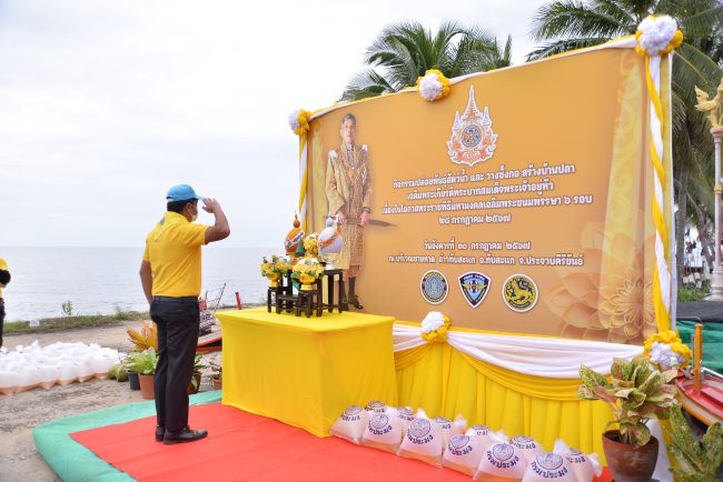 วันที่ 30 กรกฎาคม 2567 ที่ชายทะเลทับสะแก หมู่ที่ 3 ตำบลทับสะแก อำเภอทับสะแก จังหวัดประจวบคีรีขันธ์ นายราม สิงหโศภิษฐ์ นายอำเภอทับสะแก เป็นประธานในพิธีกิจกรรมปล่อยพันธุ์สัตว์น้ำวางซั้งกอ สร้างบ้านปลา เฉลิมพระเกียรติพระบาทสมเด็จพระเจ้าอยู่หัว เนื่องในโอกาสพระราชพิธีมหามงคลเฉลิมพระชนมพรรษา 6 รอบ 28 กรกฎาคม 2567 มีพันธุ์กุ้งแชบ๊วย จำนวน 300,000 ตัว ลูกปูม้า จำนวน 1,000,000 ตัว และ วางซั้งกอ สร้างบ้านปลา จำนวน 2 กอง