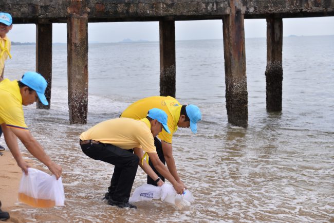 โดยมี นายสมศักดิ์ คงชู ประมงอำเภอทับสะแก นายพงษ์ศรันย์ รัตนพรหม ผู้อำนวยการศูนย์ป้องกันและปราบปรามประมงทะเลชุมพร นายนุรัตน์ ขาวสอาด หัวหน้าหน่วยป้องกันและปราบปรามประมงทะเลบางสะพาน นายวิบูลย์ เทียนทอง นายกองค์การบริการส่วนตำบลทับสะแก ดร.เจษฎา วงค์พรหม หัวหน้าสถานีวิจัยและฝึกนิสิตวนศาสตร์หาดวนกร นายพนม ปัถวี หัวหน้าแผนกโรงไฟฟ้าทับสะแก ร.ท.ทศพล ทรศัพท์ สัสดีอำเภอทับสะแก นางวิภาภรณ์ ภัทรภิญโญ ผู้อำนวยการศูนย์ส่งเสริมการเรียนรู้อำเภอทับสะแก กำนัน ผู้ใหญ่บ้าน แพทย์ประจำตำบลทับสะแก พร้อมด้วยสมาชิกกลุ่มวิ่งทับสะแกฟันรัน ครู นักเรียน โรงเรียนทับสะแกวิทยาสมาชิกองค์กรชุมชนประมงท้องถิ่น กลุ่มประมงพื้นบ้านชายทะเลทับสะแก ร่วมกิจกรรม