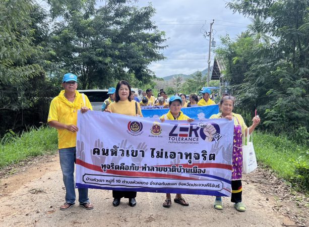 โดยร่วมเดินรณรงค์ต้านทุจริต ปลูกจิตสำนึกการเป็นพลเมืองที่ดี รวมถึงส่งเสริมการให้ประชาชนริเริ่มสร้างสรรค์ชุมชนธรรมาภิบาล สร้างความโปร่งใสและป้องกันการทุจริตประพฤติมิชอบ จิตอาสาปลูกพืชปันผล(ปัญหาที่อยากแก้ ความดีที่อยากทำ) ปลูกต้นมะม่วง ณ ศูนย์เด็กเล็กบ้านหัวเขา พร้อมทั้งแจกเมล็ดพันธ์ผัก มุ่งเน้นให้เครือข่ายผู้นำ กลุ่ม/องค์กร รวมเป็นพลังในการป้อง-ปราบปรามการทุจริต สร้างความโปร่งใสหมู่บ้าน ติดตั้งป้ายรณรงค์ต่อต้านการทุจริต ถุงผ้า ตลอดจนกล่องรับเรื่องร้องเรียน สร้างความตระหนักรู้ถึงพิษภัยปัญหาการทุจริตและประพฤติมิชอบ