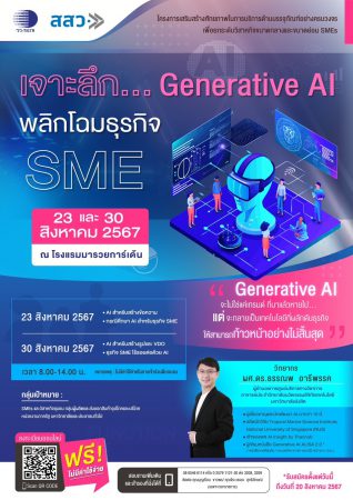 วว./สสว. พลิกโฉมธุรกิจ SME จัดงานสัมมนา ฟรี ! “เจาะลึก…Generative AI พลิกโฉมธุรกิจ SME”