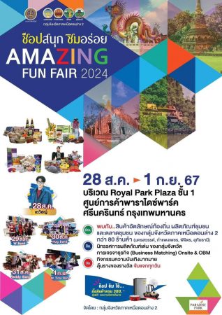 สำนักงานพาณิชย์จังหวัดนครสวรรค์ ชวนเที่ยวงาน “ช้อปสนุก ชิมอร่อย Amazing Fun Fair 2024” 28 สิงหาคม – 1 กันยายน 67 ศูนย์การค้าพาราไดซ์ พาร์ค ศรีนครินทร์